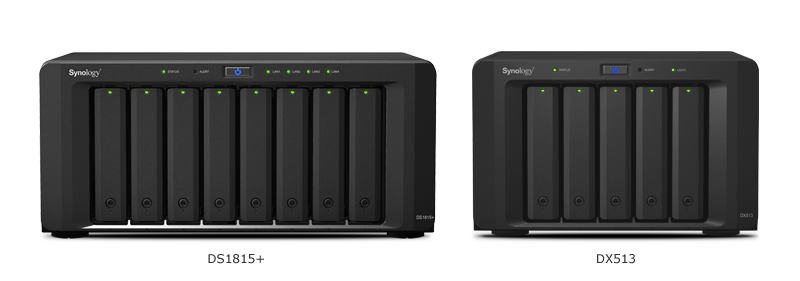 當(dāng)數(shù)據(jù)存儲空間需要擴充時,DS1815+ 可連接至其專用的擴充設(shè)備 DX513,以省力的方式快速擴充存儲容量。DS1815+ 可通過特別設(shè)計的 eSATA 傳輸線和兩臺 DX513 擴充設(shè)備2搭配使用,總存儲容量可以高達 180TB3。